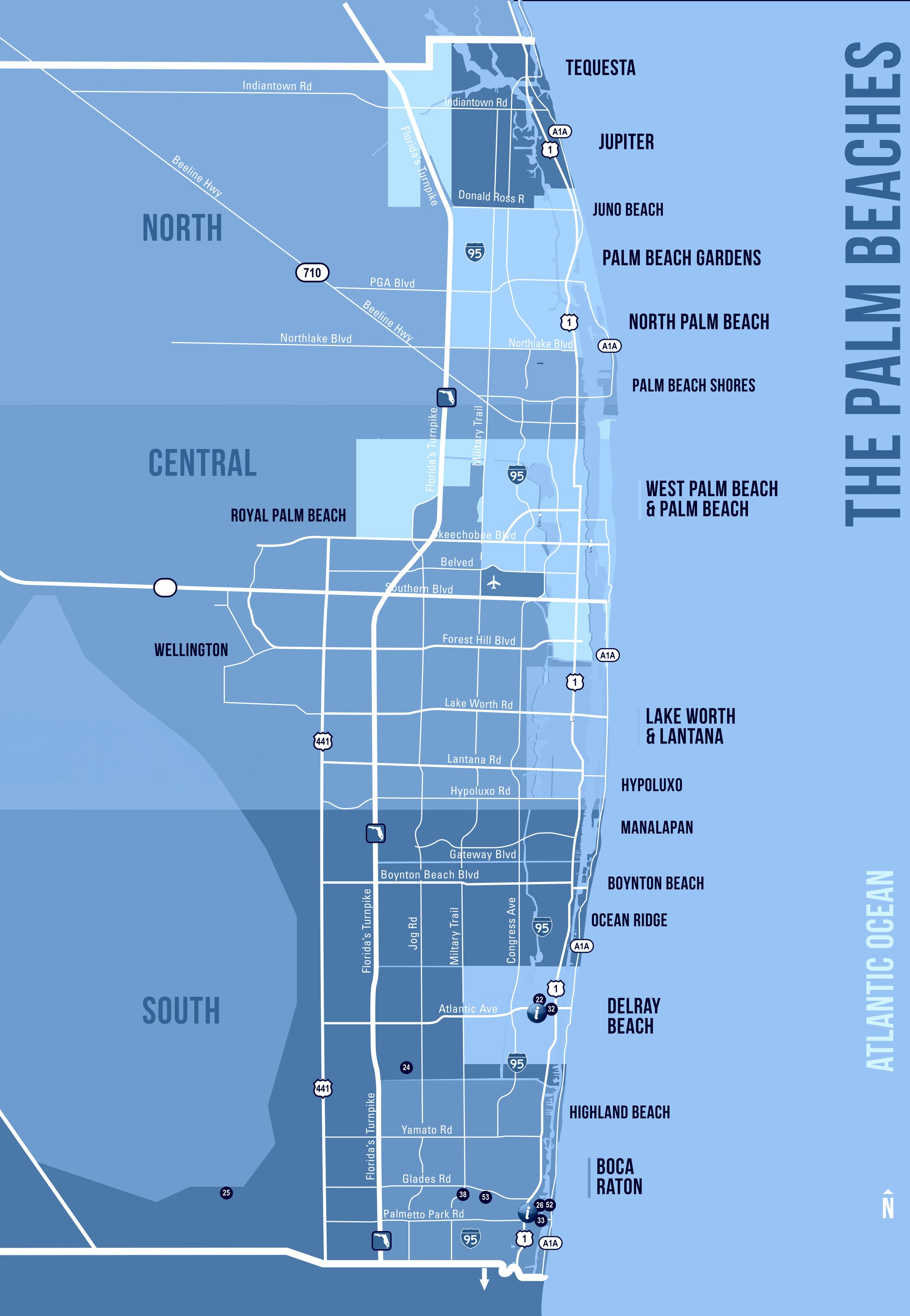Map showing Palm Beach Island and Palm Beach County residential submarkets and key corridors.