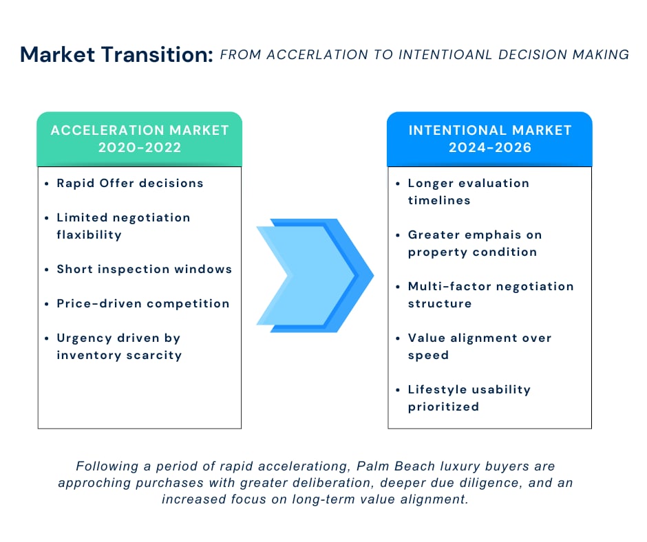 Palm Beach luxury transactions have evolved from rapid, urgency-driven decision making toward a more deliberate acquisition process focused on long-term value, property condition, and lifestyle alignment.
