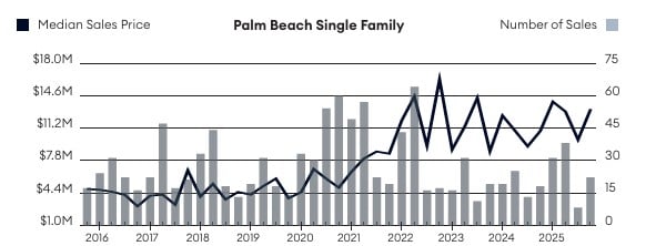 Palm Beach Island Median Single-Family Sale Price (Long-Term Trend)