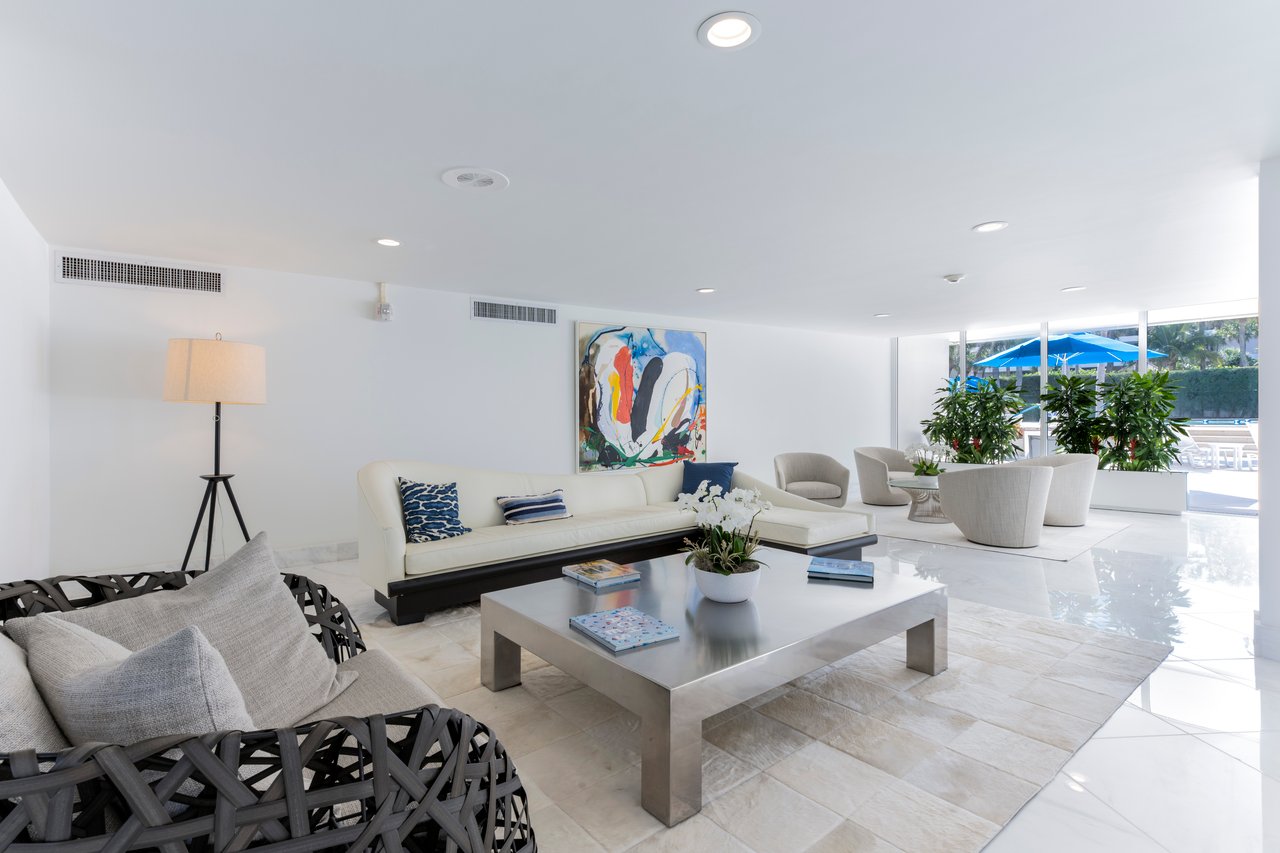 This unique layout created by combining two units offers expansive living space rarely found within the building. Light-filled interiors capture views toward the Atlantic and open to approximately 400 square feet of private balconies that bring in ocean breezes.